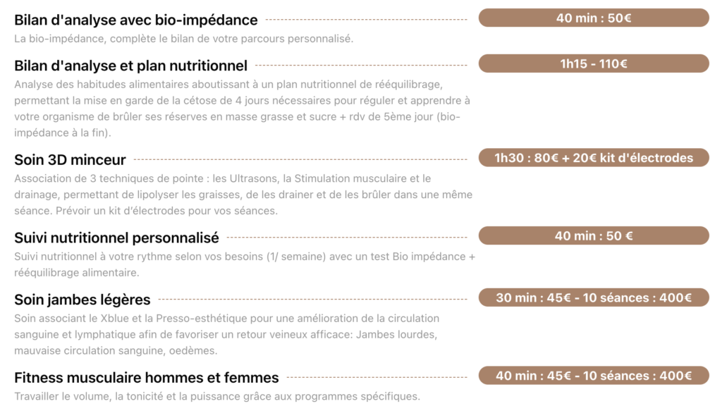 Le bilan personnalisé que nous vous faisons sur les protocoles de soin et/ou nutritionnels, individualise l’origine physiologique de vos problèmes de poids, de cellulite et de fermeté.